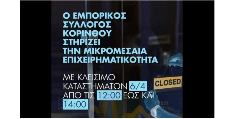 Ο Εμπορικός Σύλλογος Κορίνθου, εκφράζοντας την έντονη αγωνία του εμπορικού κόσμου της πόλης μας για τις αρνητικές εξελίξεις στην οικονομία και στην επιχειρηματικότητα, δηλώνει την δυναμική παρουσία του στις κινητοποιήσεις της Τετάρτης 6 Απριλίου 2022, συμμετέχοντας στη διαμαρτυρία έξω από τα γραφεία της ΔΕΗ στην Κόρινθο (από κοινού με το Εργατικό Κέντρο και την ΟΕΒΕ) καθώς και με δίωρη στάση εργασίας και κλείσιμο μαγαζιών από τις 12:00 έως και τις 14:00.Στο πλαίσιο αυτό καλεί όλα τα μέλη του να διαμαρτυρηθούν για τις επιπτώσεις που εξακολουθούν να πλήττουν τον εμπορικό κλάδο, αντιδρώντας αποφασιστικά στα μέτρα της κυβέρνησης τα οποία για άλλη μια φορά δεν καθίστανται ικανά να στηρίξουν μεσοπρόθεσμα τη βιωσιμότητα των επιχειρήσεων μας.Συνάδελφοι,Βιώνουμε σε καθημερινή βάση το κύμα ακρίβειας σε βασικά είδη διατροφής και στην ενέργεια, το οποίο πλήττει ολόκληρο τον κοινωνικό και τον επιχειρηματικό ιστό της χώρας. Ο επιχειρηματικός κόσμος για άλλη μια φορά «πληρώνει το μάρμαρο», καθώς η ραγδαία αγοραστική δύναμη των νοικοκυριών μεταφράζεται σε εκθετικά κλιμακούμενη πτώση του τζίρου των εμπορικών επιχειρήσεων, η οποία με μαθηματική ακρίβεια οδηγεί τις επιχειρήσεις μας στο λουκέτο και τους εργαζομένους μας στην ανεργία.Σας καλούμε όλους και όλες να στηρίξετε τη σύσσωμη κινητοποίηση της πόλης μας,