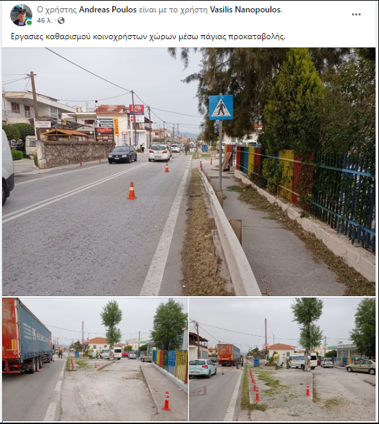 Αποψιλώσεις και καθαρισμούς ξεκίνησαν οι τοπικοί Προέδροι στις κοινότητες του δήμου Κορινθίων έχοντας πλέον στα χέρια τους τις πάγιες προκαταβολές. Πρόκειται για χρήματα που ο Δήμαρχος αποφάσισε από την αρχή της θητείας του να δίνει στους τοπικούς προέδρους ώστε να διαχειρίζονται και να διεκπεραιώνουν θέματα όπως αυτά άμεσα και χωρίς να χρειάζονται πολυήμερες διαδικασίες και αποφάσεις οργάνων.