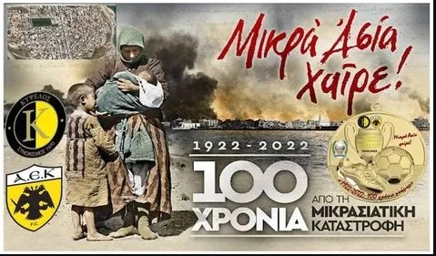 Η περίπτωση του 1922 και των Μικρασιατών προσφύγων στην Ελλάδα μάς επιτρέπει να δούμε τι είδους ζωή περιμένει τους ανθρώπους όταν βρεθούν ξένοι σε έναν τόπο. Η συμβολή των Μικρασιατών στη διαμόρφωση της νεότερης Ελλάδας υπήρξε ανυπολόγιστη, χρέος μας είναι να διατηρήσουμε ζωντανή τη μνήμη αυτών των ανθρώπων, γιατί μας κληροδοτούν πολύτιμα διδάγματα σε αυτούς τους ταραγμένους καιρούς. Έζησαν τον τραγικό ξεριζωμό από την πατρική γη, πριν από πολλές δεκαετίες, και μας μεταδίδουν σήμερα μεγάλες αλήθειες. Αναμφισβήτητα, οι εμπειρίες τους συνδέονται άμεσα με την κατάσταση στην οποία βρίσκονται δεκάδες εκατομμύρια ξεριζωμένοι, έναν αιώνα μετά. Έτσι πήραμε την πρωτοβουλία να κάνουμε κάποια event για τον τόπο των Προγόνων μας, οπότε και κλείσαμε ένα παιχνίδι με τους Παλαίμαχους της Ιστορικής ομάδας της ΑΕΚ ώστε να τους τιμήσουμε.. 16/5/2022 ώρα 18:00 στο ΣΤΑΔΙΟ ΚΟΡΙΝΘΟΥ