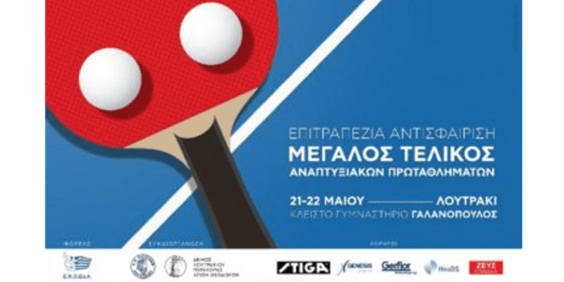 Το Σάββατο 21 και την Κυριακή 22 Μαΐου 2022 στο Κλειστό Γυμναστήριο Λουτρακίου ”Γ. ΓΑΛΑΝΟΠΟΥΛΟΣ” θα πραγματοποιηθεί ο Μεγάλος Τελικός Αναπτυξιακών πρωταθλημάτων Πινγκ Πονγκ.