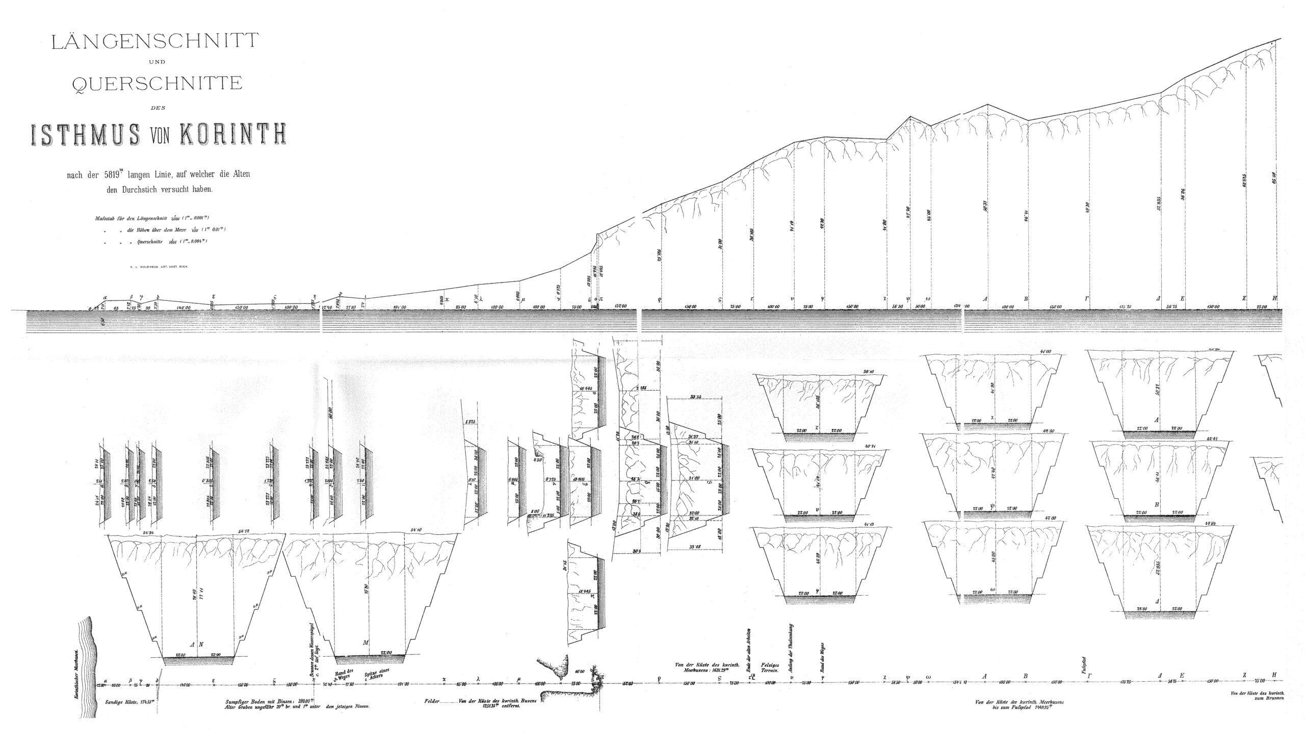 3) Νωρίτερα το 1852 είχαν υπάρξει μελέτες από τον κρητικό μηχανικό Λεωνίδα Λυγούνη για τη διάνοιξη της Διώρυγας με εύρος 54,0μ.