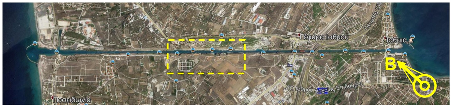 Ο τίτλος αναφέρεται στην επέμβαση στη Διώρυγα Κορίνθου όπως εφαρμόζεται από αντίστοιχη μελέτη από την Ένωση Οικονομικών Φορέων «ΕΔΑΦΟΣ Σύμβουλοι Μηχανικοί Α.Ε.» – «ΑΣΤΡΟΛΑΒΟΣ ΤΕΧΝΙΚΗ Ο.Ε.» – «ΜΑΡΝΕΤ Α.Τ.Ε.» και με τίτλο: «Οριστική Επισκευή και Αποκατάσταση των Ζημιών στο Πρανές από την Πλευρά της Πελοποννήσου της Διώρυγας Κορίνθου από Χ.Θ. 2+456 έως 3+486».