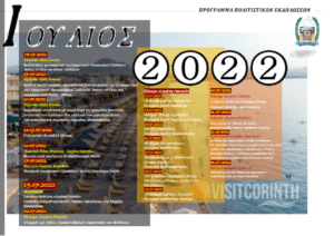 ΔΗΜΟΣ ΚΟΡΙΝΘΙΩΝ Το πρόγραμμα πολιτιστικών εκδηλώσεων μηνός Ιουλίου του δήμου Κορινθίων By SFEDONA 08/07/2022 ShareTweet 0 Παρακάτω μπορείτε να δείτε αναλυτικά το πρόγραμμα των πολιτιστικών εκδηλώσεων που θα πραγματοποιηθούν στα δημοτικά διαμερίσματα του δήμου Κορινθίων