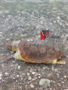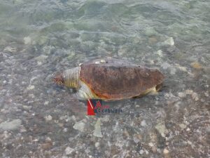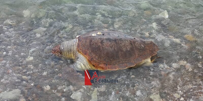 Νωρίς το απόγευμα της Δευτέρας (11/7), εντοπίστηκε νεκρή θαλάσσια χελώνα σε παραλία των Αγίων Θεοδώρων, κοντά στο “Art Cafe”.