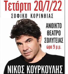 O δημοφιλής λαϊκός τραγουδιστής Νίκος Κουρκούλης σε ένα μοναδικό μουσικό γλέντι γεμάτο κέφι, διασκέδαση και αγαπημένα τραγούδια στο Ανοιχτό Θέατρο Σολυγείας στο Σοφικό την Τετάρτη 20 Ιουλίου.