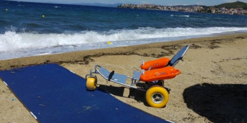 Σύμφωνα με το ρεπορτάζ μία λουόμενη έδεσε το σκύλο της στο αμαξίδιο πρόσβασης ατόμων με αναπηρία στην θάλασσα και απολάμβανε αμέριμνη το μπάνιο της.