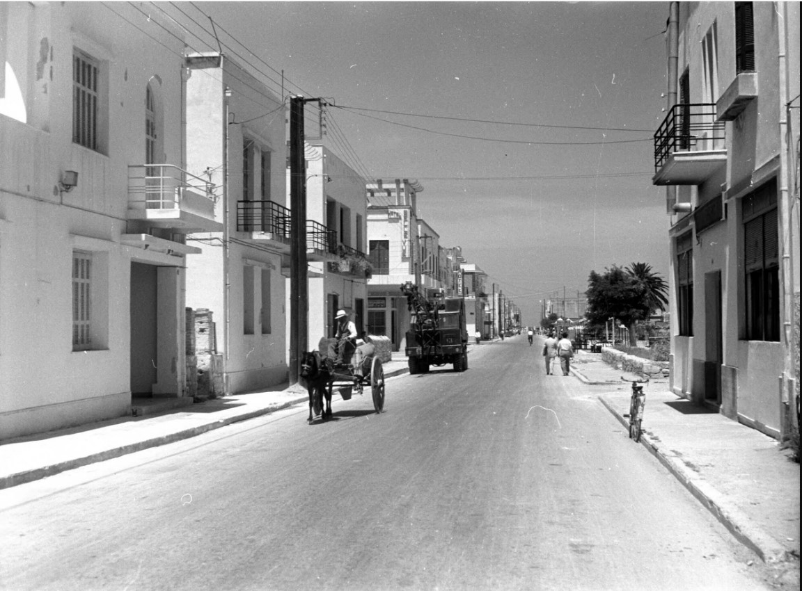 Άμαξα και φορτηγό την ίδια στιγμή σε δρόμο της πόλης. Φωτ.: Harrison Forman/University of Wisconsin