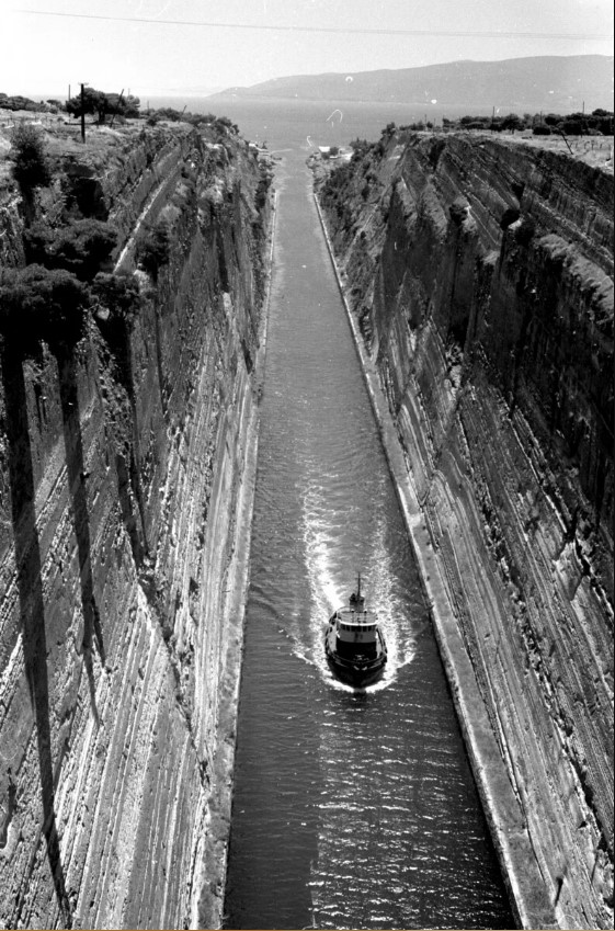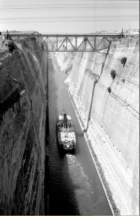 Ένα πλοίο διασχίζει τον Ισθμό της Κορίνθου. Φωτ.: Harrison Forman/University of Wisconsin