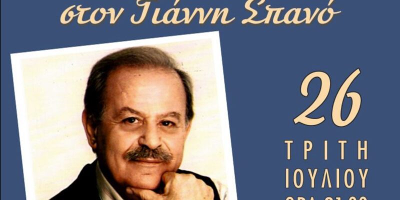 Τρία σχεδόν χρόνια μετά τον θάνατό του και ανήμερα των γενεθλίων του, την Τρίτη 26 Ιουλίου 2022, ώρα 21:00, στο 1ο Γυμνάσιο Κιάτου θα λάβει χώρα μια σπουδαία συναυλία, όπου αγαπημένοι τραγουδιστές φίλοι και συνεργάτες του Γιάννη Σπανού θα ερμηνεύσουν αξέχαστες συνθέσεις του.
