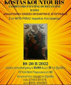 Ο Κωνσταντίνος Κουντούρης Ζωγράφος – Αγιογράφος εκθέτει Έργα του Βυζαντινής Αγιογραφίας στο Δημοτικό Κτήριο Beau Rivage (Ποσειδώνος & Ήρας 2, Λουτράκι)