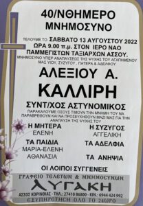 Το Σάββατο 13 Αυγούστου θα τελεστεί το 40/νθήμερο Μνημόσυνο