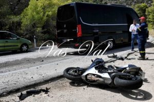 Ο 37χρονος μοτοσικλετιστής με κατεύθυνση προς Επίδαυρο κάτω από αδιευκρίνιστες συνθήκες έχασε τον έλεγχο της μεγάλου κυβισμού μηχανής του με αποτέλεσμα να καρφωθεί σε πούλμαν που διέρχετο στο αντίθετο με τον μοτοσικλετιστή ρεύμα κυκλοφορίας.