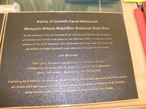 Μάλιστα, οι δύο αναθηματικές πλάκες που έρχονται να τιμήσουν τους πεσόντες και αιχμαλώτους του Β’ Παγκοσμίου Πολέμου θα αποκαλυφθούν το Σάββατο, 1 Οκτωβρίου 2022, όπως και η προτομή του Χαριλάου Τρικούπη, σε εκδήλωση που θα λάβει χώρα στον Ισθμό. Η κατασκευή τους πραγματοποιήθηκε με τη συνεργασία της Περιφέρειας Πελοποννήσου και του Δήμου Κορινθίων με την Παγκορινθιακή Αδελφότητα Μελβούρνης και Βικτώριας, τις Τζένη Κρασοπουλάκη και Χριστίνα Δεποτέρη και τον Αυστραλό ιστορικό και συγγραφέα Τζιμ Κλέιβεν.