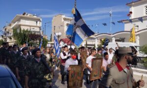 στον Ιερό Ναό Κοιμήσεως Θεοτόκου Ιωνίας Κορίνθου (Συνοικισμός) και στην συνέχεια: Συγκέντρωση στο χώρο του «Μνημείου Μικρασιατών Προσφύγων