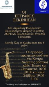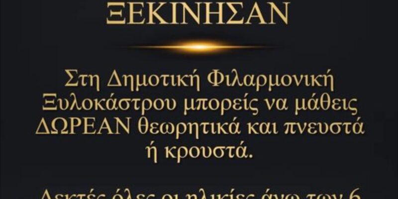 Ξεκίνησαν οι εγγραφές για τη Δημοτική Φιλαρμονική Ξυλοκάστρου. Μια νέα χρονιά ξεκινά,για νέους μουσικούς και παλαιούς ,μικρούς και μεγάλους ,γεμάτη χαρά, δημιουργία και πολλές μελωδίες.