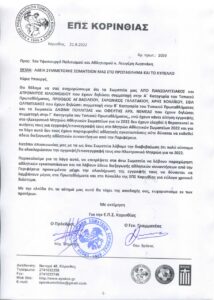 Και η ΕΠΣ Κορίνθου ζητά από τον Υφυπουργό Αθλητισμού, Λευτέρη Αυγενάκη να να ληφθεί ειδική μέριμνα για όσα ποδοσφαιρικά σωματεία έχουν ήδη καταθέσει αίτηση εγγραφής στο Ηλεκτρονικό Μητρώο Ερασιτεχνικών Αθλητικών Σωματείων και αυτή βρίσκεται στο στάδιο ελέγχου ή θεραπείας.
