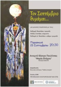 1_ΚΟΡΙΝΘΙΑ Δήμος Βέλου- Βόχας: Μουσική παράσταση στο θέατρο Πουλίτσας. By SFEDONA 23/09/2022 ShareTweet 0