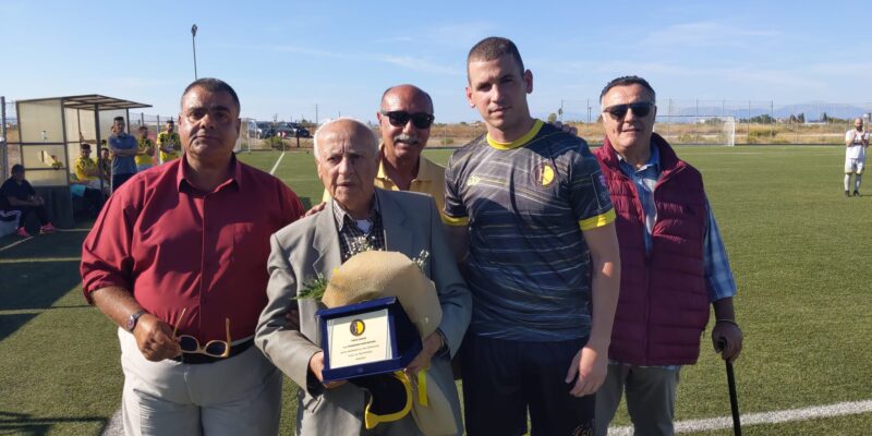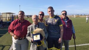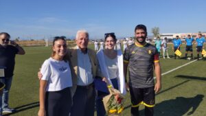 στο γήπεδο του Λεχαίου με τους κ.κ. Θάνο Καραγεώργης επιτυχημένο επαγγελματία στην πόλη και επί πολλά έτη πρόεδρος της ομάδας και Κωνσταντίνο Πρεβεζάνο κουρέα του Συνοικισμού ο οποίος έχει διατελέσει και αυτός επί πολλά έτη Ταμίας και Γενικός Γραμματέας.