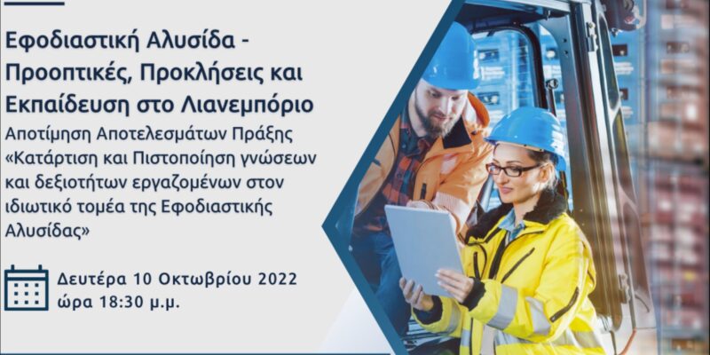 Ο Πρόεδρος του Επιμελητηρίου Κορινθίας Παναγιώτης Λουζιώτης και το διοικητικόσυμβούλιο του Επιμελητηρίου Κορινθίας σε συνεργασία τον ΣΕΛΠΕ σας προσκαλούνσε ενημερωτική εκδήλωση με θέμα: Αποτίμηση αποτελεσμάτων πράξης κατάρτιση και πιστοποίηση γνώσεων και δεξιοτήτων εργαζομένων στον ιδιωτικό τομέα της εφοδιαστικής αλυσίδας.