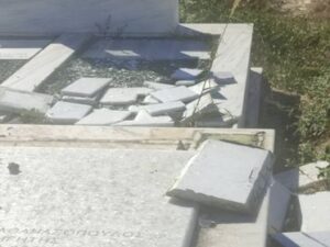 Κάποιοι που όπως όλα δείχνουν δεν έχουν ούτε ιερό ούτε όσιο, έβγαλαν το άχτι τους πάνω στα μνήματα του νεκροταφείοy στα Εξαμίλια.
