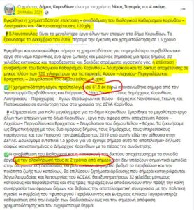 Ο Νίκος Σταυρέλης, με ανάρτησή του χθες στο FB αναφέρεται στο αποχετευτικό Δ.Ε Άσσου – Λεχαίου  επισημαίνοντας τα εξής: