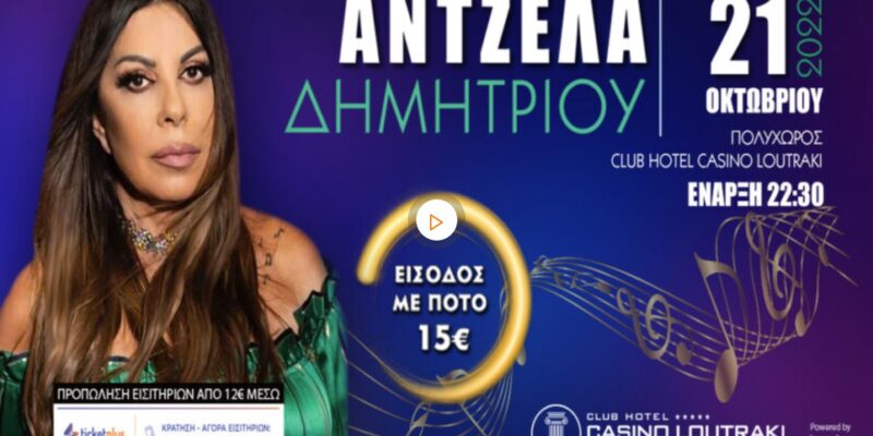 Το ClubHotelCasinoLoutraki υποδέχεται την ανεπανάληπτη Άντζελα Δημητρίουσε μια λαϊκή βραδιά που θα σας μείνει αξέχαστη!