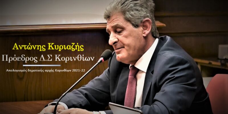 Για την υποδειγματική λειτουργία του δημοτικού συμβουλίου ευχαρίστησε τον Πρόεδρο Αντώνη Κυριαζή ο Δήμαρχος Κορινθίων Βασίλης Νανόπουλος στην διάρκεια του απολογισμού της 3ης δημαρχιακής χρονιάς, το απόγευμα της Δευτέρας 17.10.22 από την αίθουσα του Δημοτικού Συμβουλίου Κορινθίων .