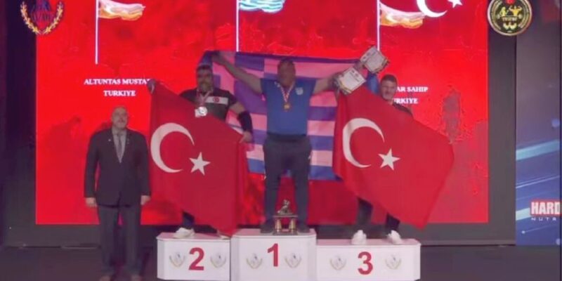 Την κορυφή του κόσμου κατέκτησε ο Γιώργος Χαραλαμπόπουλος και μάλιστα μέσα στην Αττάλεια της Τουρκίας, επικρατώντας στον τελικό του Παγκοσμίου Πρωταθλήματος Χειροπάλης Τούρκου Μουσαφά Αλτούντας στην κατηγορία +100 κιλά. Ωστόσο αυτό που προκάλεσε αλγεινή εντύπωση είναι ότι στην απονομή των μεταλλίων, οι διοργανωτές έκοψαν την ανάκρουση του εθνικού ύμνου στη μέση!