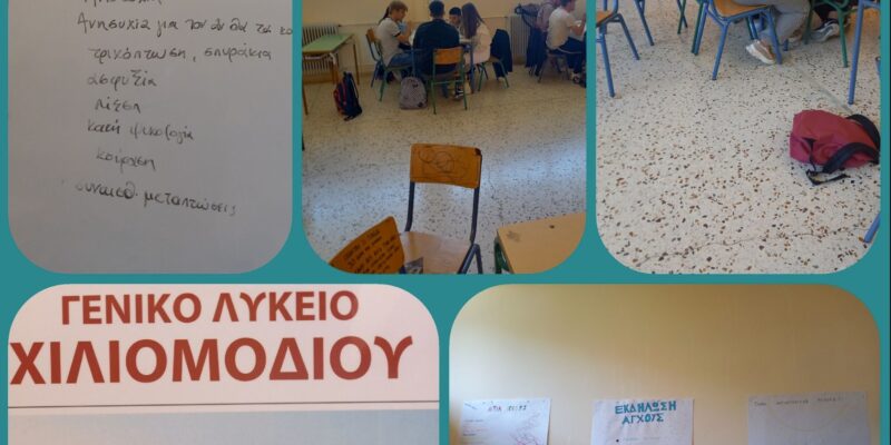 Ολοκληρώθηκε χθες το πρόγραμμα παρέμβασης στους μαθητές και των δύο τμημάτων του Γενικού Λυκείου Χιλιομοδίου με τίτλο “Άγχος και Εξετάσεις “. Ήταν ένα πολύ ενδιαφέρον και πάντα επίκαιρο θέμα και συντονίστριες ήταν : Αθηνά Γαϊτάνη, Κοινωνική Λειτουργός & Νατάσα Μητσάκου, Ψυχολόγος. Οι μαθητές πήραν πολύτιμες γνώσεις αλλά και συμβουλές για το σημαντικό αυτό θέμα .