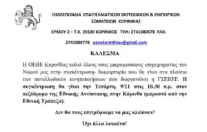 1_ΚΟΡΙΝΘΙΑ ΟΕΒΕ Κορινθίας: “Όχι άλλα λουκέτα” -Κάλεσμα στους μικρομεσαίους επιχειρηματίες By SFEDONA 08/11/2022 ShareTweet 0