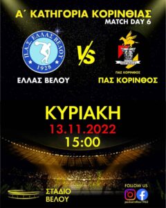 ΑΘΛΗΤΙΣΜΟ Την Κυριακή 13 Νοεμβρίου ο αγώνας ΠΑΣ Κόρινθος – ΕΛΛΑΣ Βέλου By SFEDONA 12/11/2022 ShareTweet 0