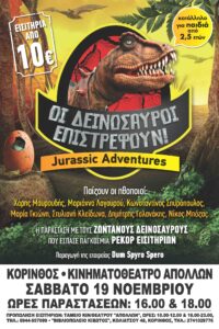 Οι ΔΕΙΝΟΣΑΥΡΟΙ ΕΠΙΣΤΡΕΦΟΥΝ – Jurassic Adventures είναι η αυθεντική παράσταση που γνωρίζει τεράστια επιτυχία στο εξωτερικό και παρουσιάζεται στην Ελλάδα σε παραγωγή της εταιρείας Dum Spyro Spero.