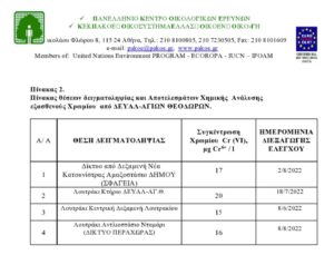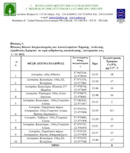 Επιστημονικό συνεργείο του ΠΑΚΟΕ πραγματοποίησε την 1/11/2022, στα πλαίσια των δραστηριοτήτων του στην 43χρονη λειτουργία του, ενδεικτικές δειγματοληψίες και μετρήσεις νερού ανθρώπινης κατανάλωσης στο Λουτράκι Κορινθίας. Πιο συγκεκριμένα λήφθηκαν 10 δείγματα από διάφορα σημεία μέσα στην πόλη (συνημμένος πίνακας 1), με σκοπό τον καθορισμό της συγκέντρωσης εξασθενούς χρωμίου. Τα δείγματα ελήφθησαν είτε από καταστήματα υγειονομικού ενδιαφέροντος, είτε από δημόσιες βρύσες.