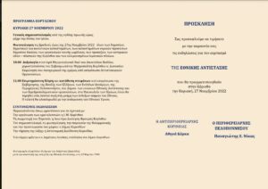 ΕΚΔΗΛΩΣΕΙΣ ΚΥΡΙΑΚΗ 27 ΝΟΕΜΒΡΙΟΥ ΕΟΡΤΑΣΜΟΣ ΕΘΝΙΚΗΣ ΑΝΤΙΣΤΑΣΗΣ ΣΤΗ ΚΟΡΙΝΘΟ By SFEDONA 23/11/2022 ShareTweet 0