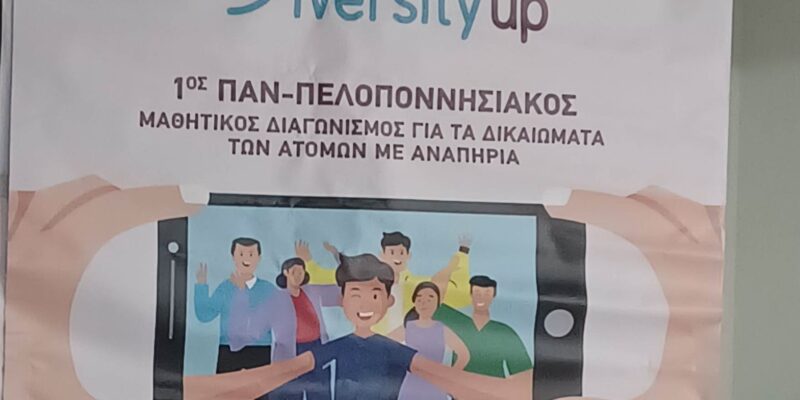 Στο πλαίσιο της Δράσης «Diversity up» (Πακέτο Εργασίας, υλοποιείται ένα σύνολο καινοτόμων δράσεων για την εκπαιδευτική και μαθητική κοινότητα της Πελοποννήσου, αλλά και για την ευρύτερη κοινωνία της Περιφέρειας, με στόχο την προώθηση των δικαιωμάτων των ατόμων με αναπηρία και χρόνιες παθήσεις.