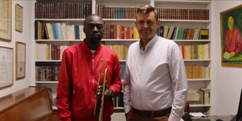 Η αγάπη του για την μουσική τον οδήγησε στο Καλογεροπούλειο Ίδρυμα, παρακολουθεί ιδιαίτερο μάθημα ως υπότροφός του και συμμετέχει στα ομαδικά μαθήματα που παρέχει το ίδρυμα σε προσφυγόπουλα της δομής φιλοξενίας της Κορίνθου σε συνεργασία με το εκπαιδευτικό κέντρο El Sistema Greece.