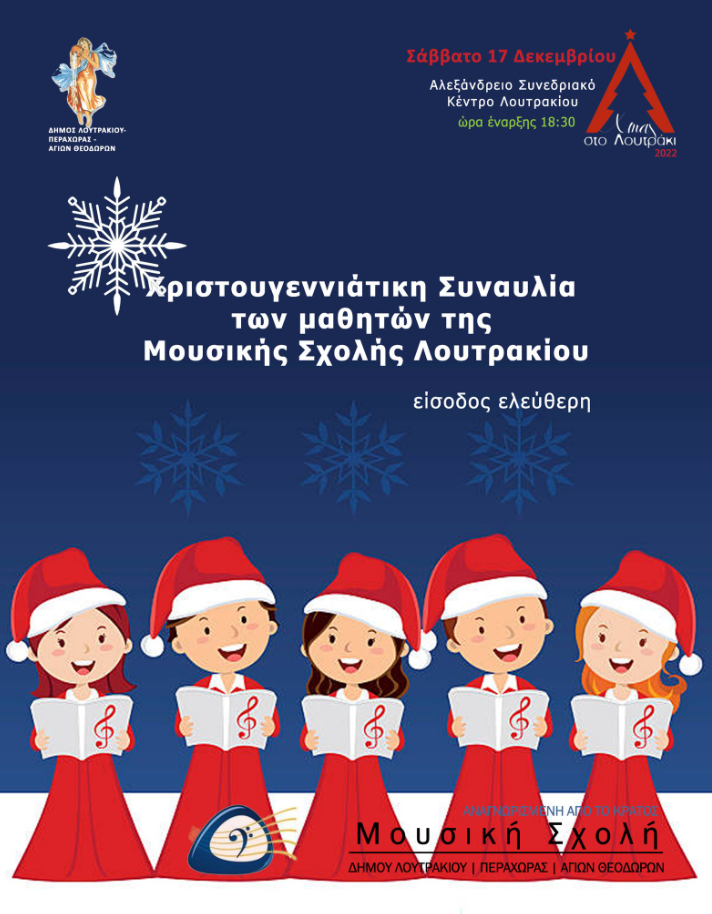 Ο Δήμος Λουτρακίου – Περαχώρας – Αγίων Θεοδώρων και η Μουσική Σχολή Λουτρακίου σας προσκαλούν στην Χριστουγεννιάτικη Συναυλία των μαθητών της Μουσικής Σχολής Λουτρακίου,