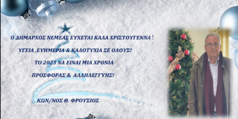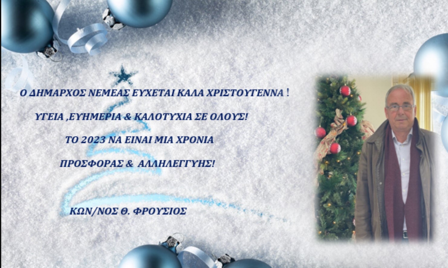 ΔΗΜΟΣ ΝΕΜΕΑΣ Ευχές Δημάρχου Νεμέας για τα Χριστούγεννα και το νέο έτος By SFEDONA 21/12/2022 ShareTweet 0 Ευχές Δημάρχου Νεμέας Κων/νου Φρούσιου Ο ΔΗΜΑΡΧΟΣ ΝΕΜΕΑΣ ΕΥΧΕΤΑΙ ΚΑΛΑ ΧΡΙΣΤΟΥΓΕΝΝΑ ! ΥΓΕΙΑ, ΕΥΗΜΕΡΙΑ και ΚΑΛΟΤΥΧΙΑ ΣΕ ΟΛΟΥΣ! ΤΟ 2023 ΝΑ ΕΙΝΑΙ ΜΙΑ ΧΡΟΝΙΑ ΠΡΟΣΦΟΡΑΣ και ΑΛΛΗΛΕΓΓΥΗΣ! ΚΩΝ/ΝΟΣ Θ. ΦΡΟΥΣΙΟΣ