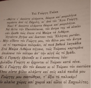 Τότε αυτοί κατέβηκαν από τη Μονή του Προφήτη Ηλία Ζάχολης και έπιασαν τη φυσική οχυρή θέση στα Μαύρα Λιθάρια με σκοπό να χτυπήσουν τους Τούρκους