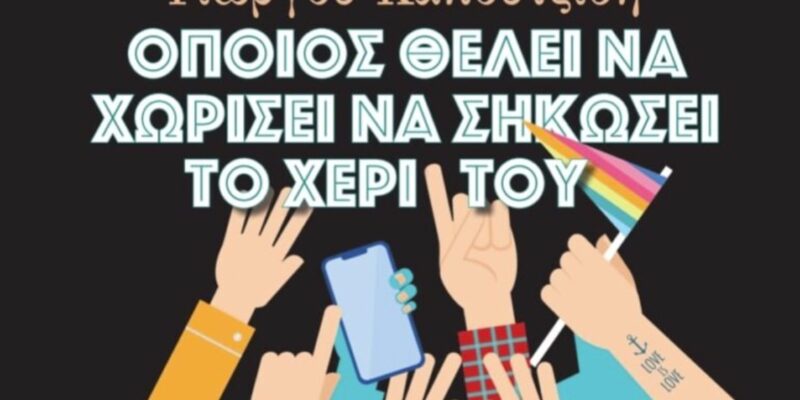 Όποιος θέλει να αποδεχθεί την διαφορετικότητα, όποιος θέλει να νιώσει ελεύθερος, ν’ απαλλαγεί από αδιέξοδα και στερεότυπα, να κάνει μια νέα αρχή, ακόμα και να χωρίσει, να σηκώσει απλώς το χέρι του…
