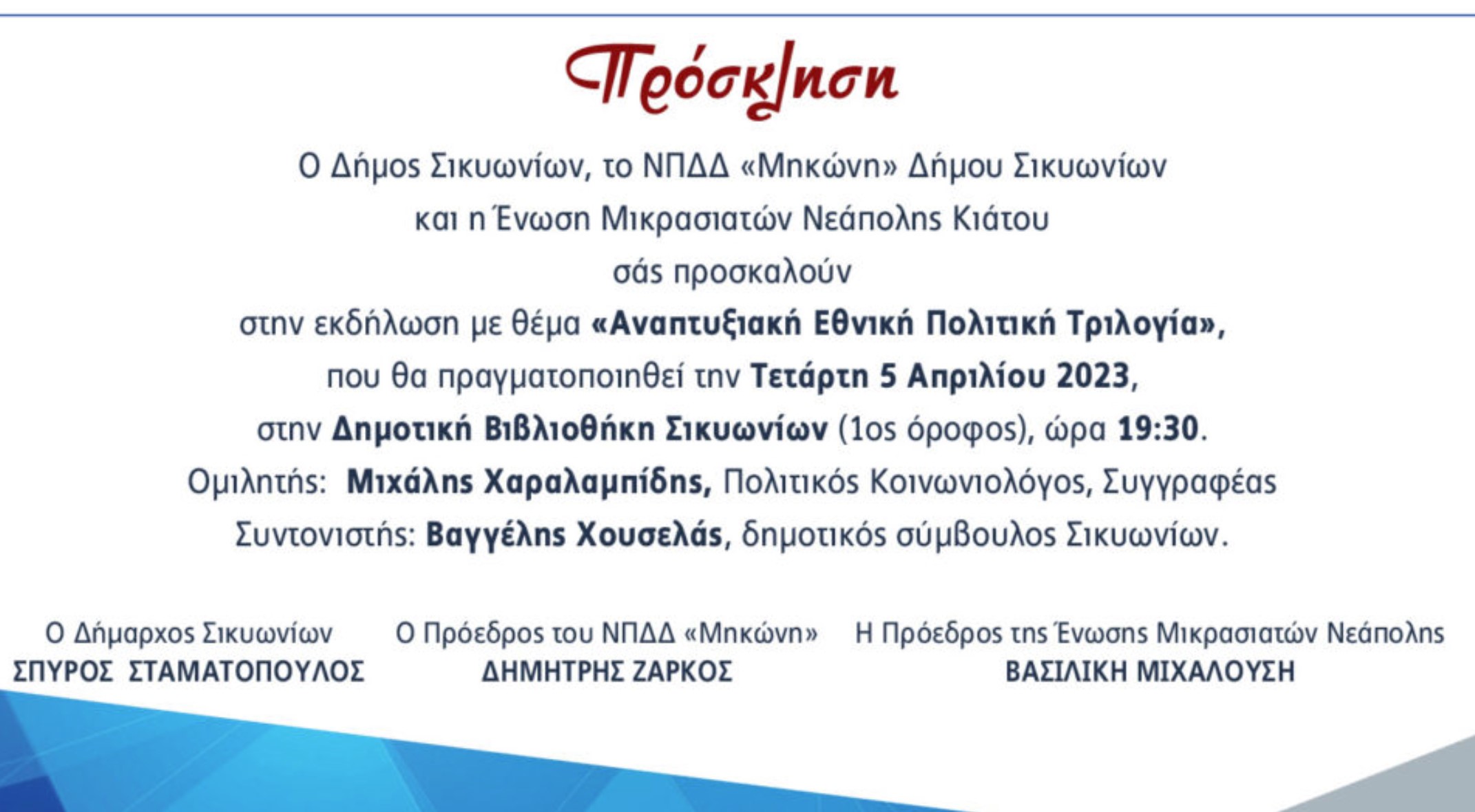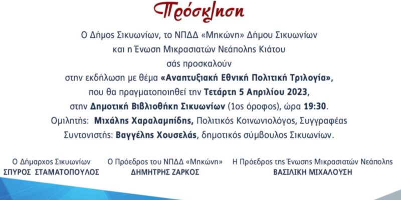 ΕΚΔΗΛΩΣΕΙΣ Δημοτική Βιβλιοθήκη Σικυωνίων: Σήμερα η Εκδήλωση με θέμα “Αναπτυξιακή Εθνική Πολιτική Τριλογία” By SFEDONA 05/04/2023 ShareTweet 0