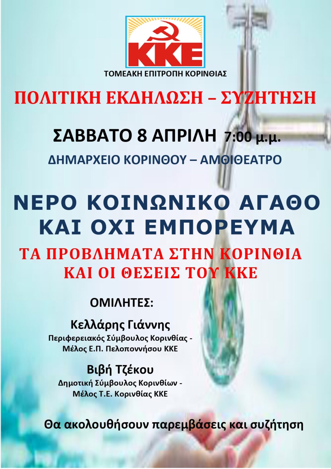 1_ΚΟΡΙΝΘΙΑ Πολιτική εκδήλωση της Τ.Ε Κορινθίας του ΚΚΕ για το νερό. By SFEDONA 05/04/2023 ShareTweet 0