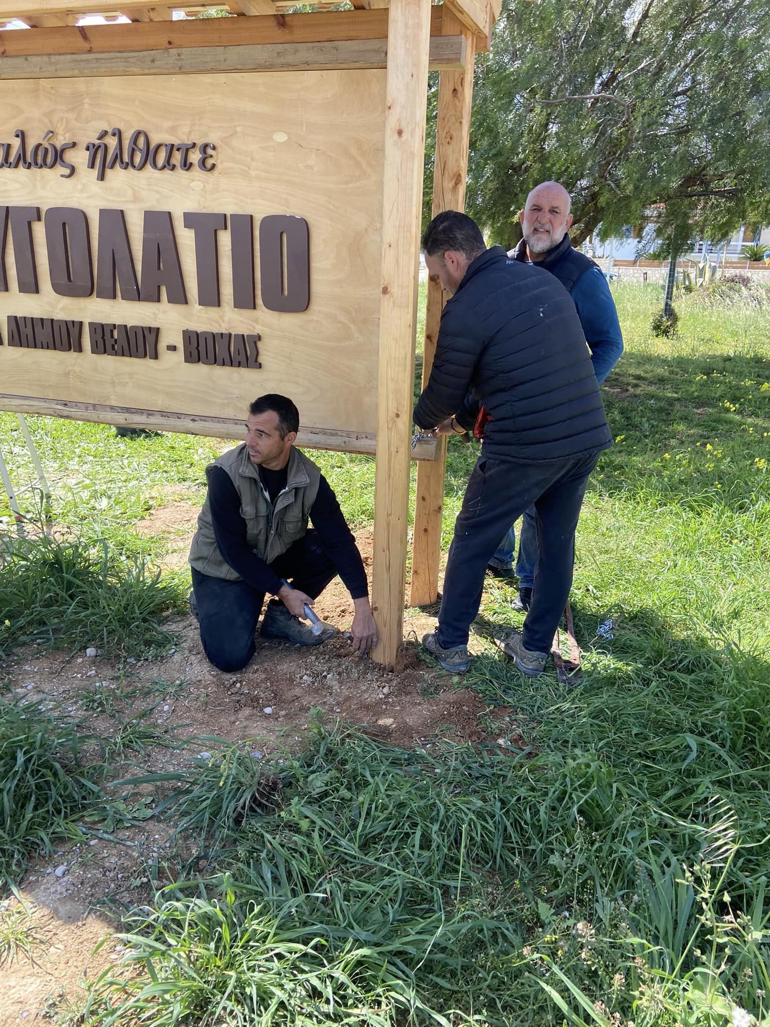 Τοποθετήσαμε μία ταμπέλα η οποία πληρώθηκε από προσωπικά έξοδα του τοπικού συμβουλίου και από τους χορηγούς και φίλους.