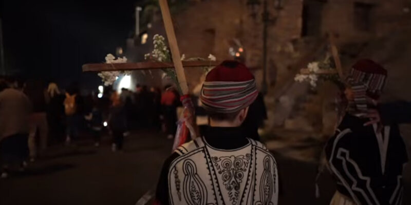 Η Αρχαία Κόρινθος λουσμένη από τα χρώματα και τα αρώματα της Άνοιξης, αναβιώνει πασχαλινά έθιμα και παραδόσεις ενώ το βράδυ της Ανάστασης δεκάδες πυροτεχνήματα σχεδιάζουν τα πιο ωραία μοτίβα με φόντο τον Ναό του Απόλλωνα.