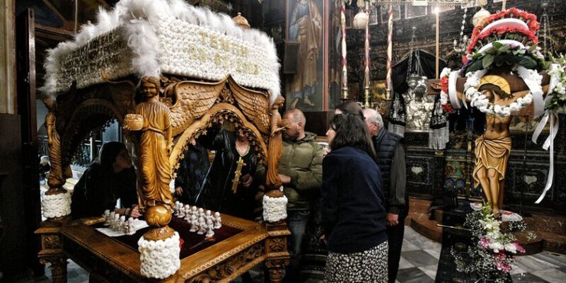 Σε κάθε γωνιά της Ελλάδας οι Επιτάφιοι στολισμένοι με λουλούδια περιφέρονται σε δρόμους και σοκάκια. Οι πιστοί με αναμμένα κεράσια ακολουθούν, ψέλνοντας «Ω γλυκύ μου έαρ».