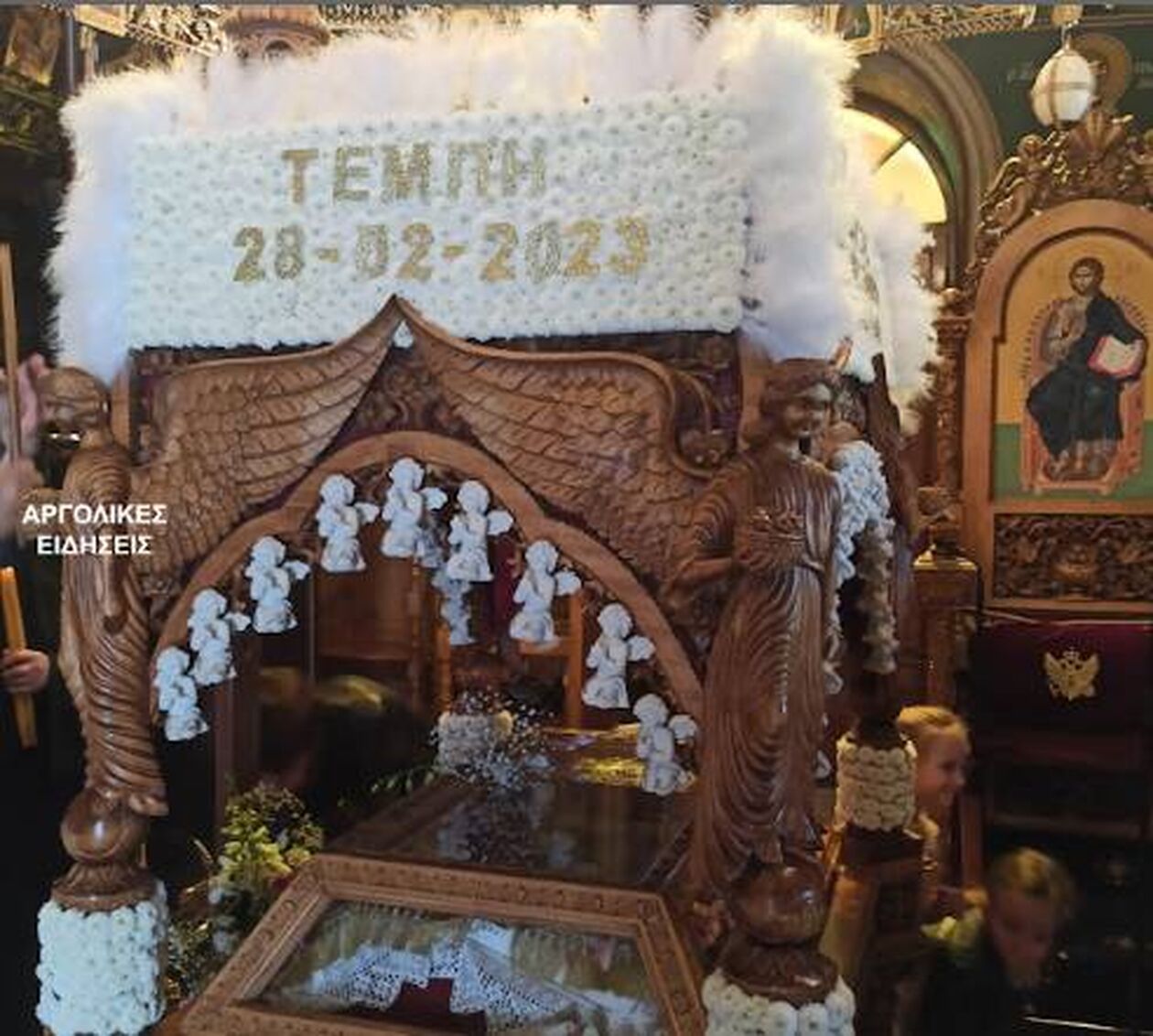 Όπως αναφέρει το argolikeseidhseis.gr, oι πιστοί της ενορίας στόλισαν τον επιτάφιο με περισσή αγάπη γράφοντας ΤΕΜΠΗ 28/2/2023.