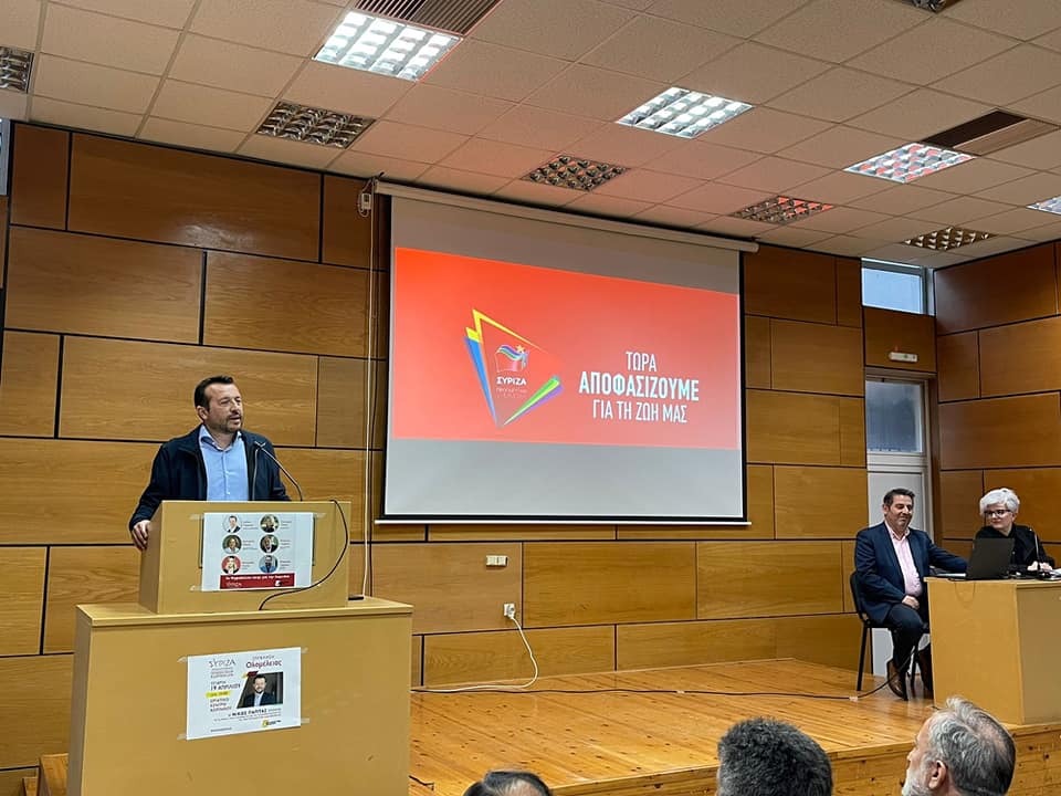 Εκτός από την συζήτηση με τα στελέχη και τους υποψηφίους για την αλλαγή στην διακυβέρνηση της χώρας, πραγματοποίησε και πολιτική ομιλία στην οποία τοποθετήθηκε επίσης, τόσο σχετικά με τα στελέχη στο νομό και το εκλογικό αποτέλεσμα, όσο και για την υπόθεση Γεωργούλη και την άμεση αντίδραση του κόμματος.