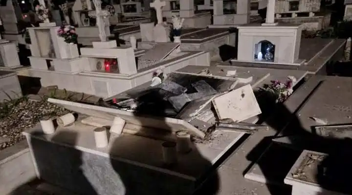 Για μία ακόμα φορά το κοιμητήριο των Εξαμιλίων έγινε στόχος βανδάλων. Αυτή την φορά δεν έκλεψαν απλώς τα χάλκινα αντικείμενα, αλλά οι άγνωστοι βέβηλοι διέλυσαν με βαριοπούλες πάνω από 100 τάφους. Θέση πήρε πριν απο λίγο ο δήμαρχος Κορινθίων, με ανάρτησή του στον προσωπικό του λογαριασμό. Παράλληλα, προανήγγειλε νέα μέτρα για την φύλαξη του πολύπαθου χώρου: