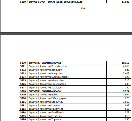 Αναλυτικά ο πληθυσμός στην Κορινθία ανά δήμο και χωριό έχει ως εξής