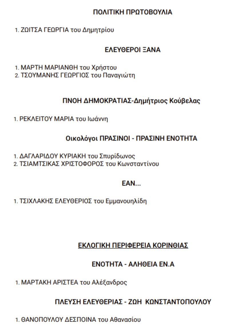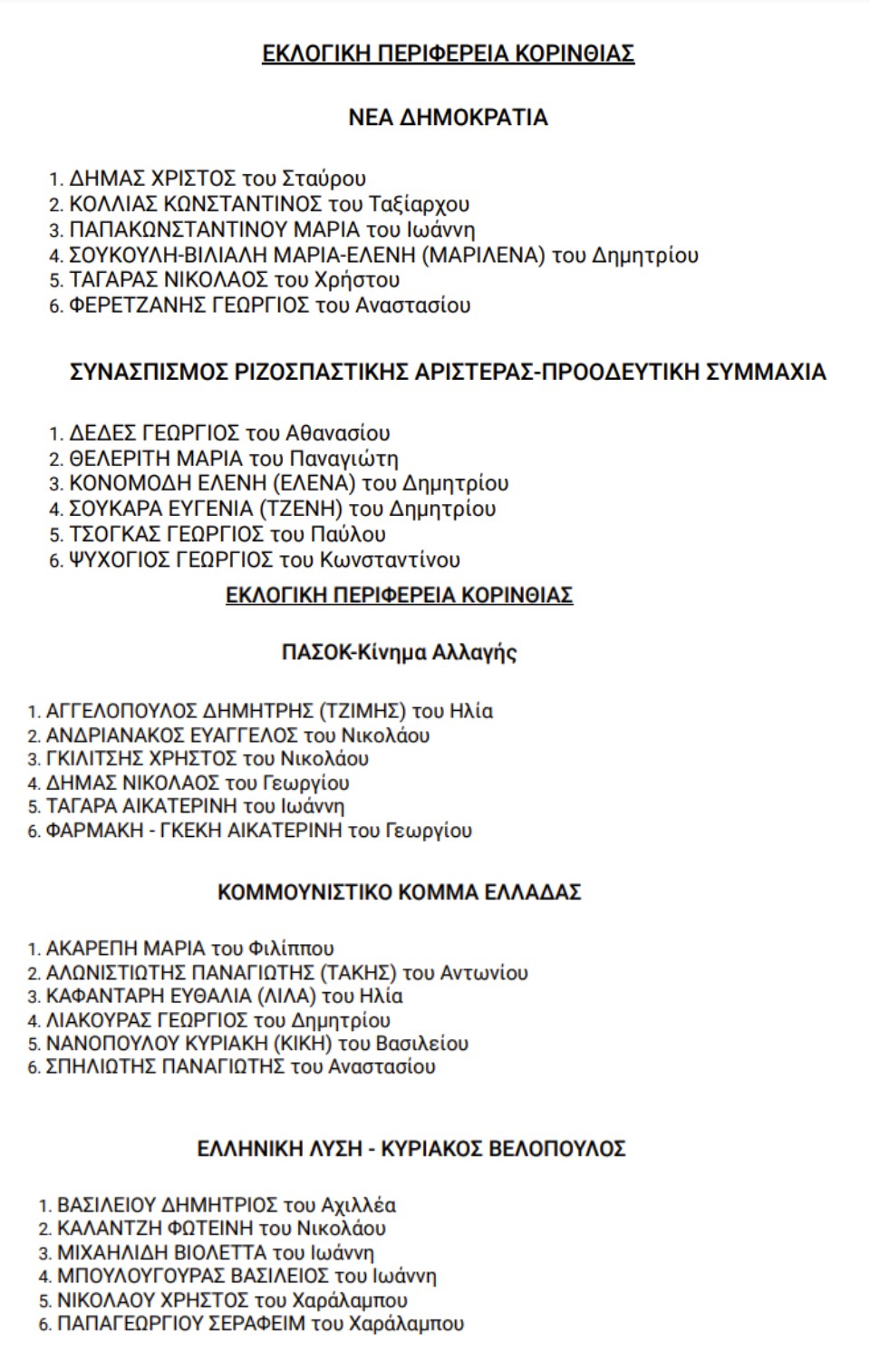 Δείτε ποιοι είναι οι υποψήφιοι στην Κορινθία